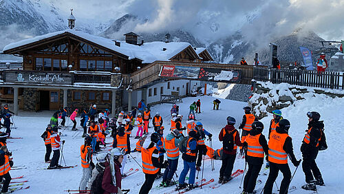 In den darauffolgenden Tagen besserte sich die Wetterlage leider nicht, aber dafür unser Fahrkönnen. Am Mittwoch hatten wir Schülerinnen und Schüler die Möglichkeit in kleinen Gruppen die Pisten unsicher zu machen. Vor allem für die Anfängergruppe war dies ein großes Highlight. Durch die orangenen Schutzwesten der Jugendpflege Burgwedel haben wir hoffentlich alle Blicke auf uns gezogen. Des Weiteren wurden am Mittwoch viele weitere „Arten des Skifahrens“ vorsichtig ausgetestet. Besonders beliebt waren hierbei das Skifahren ohne Skier oder nur mit einem Ski sowie das Rückwärtsfahren.