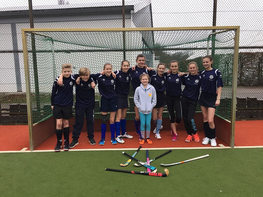 Hockey-Team des Gymnasiums: Phoebe Behre, Leon Bertram, Leander Kellner, Marie Selker, Noemi Mattheus, Kaja Horn, Mathilda Wendt, Laura Conrad, Pia Brandes und Emma Pfaffe.