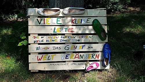 Pünktlich um 16 Uhr ertönte die erste Musik des Blasorchesters BlasDesaster im Alten Park. Nach einem gelungen Opening eröffnete Herr Düker die Ausstellung zum Thema PARK(T)RÄUME. Diese haben Schülerinnen und Schüler des Gymnasiums und der IGS in Großburgwedel in Zusammenarbeit mit dem Kunstverein Burgwedel-Isernhagen vorbereitet. Es ist 5 vor 12! Wussten Sie, dass Sie laut einer aktuellen WWF-Studie bis zu 5 Gramm Mikroplastik zu sich nehmen? Unter anderem auf diese Mikroplastik- und Müllproblematik, aber auch auf bedrohte Tierarten machen die Exponate Aufmerksam. Insbesondere zeigt die Ausstellung, wie eng diese Themen im Zusammenhang stehen und unseren ökologischen Fußabdruck beeinflussen. Die Exponate sind in verschieden Räumen ausgestellt. Räume, die die Natur-AG aus Weiden gefertigt hat, um die Nachhaltigkeit natürlicher Materialien zu zeigen und so eine gedankliche und materielle Verbindung zwischen dem Ausstellungsort „Park“ und dem Thema „ökologischer Fußabdruck“ sowie den damit verbundenen Ausstellungsobjekten aus recycelten Materialien herzustellen. Mit musikalischem Rahmen konnten sich die Besucher die Ausstellung anschauen, selber kreativ werden und mit den Künstlern ins Gespräch kommen. Wenn Sie mögen, die Ausstellung ist bis Mitte September zu sehen.