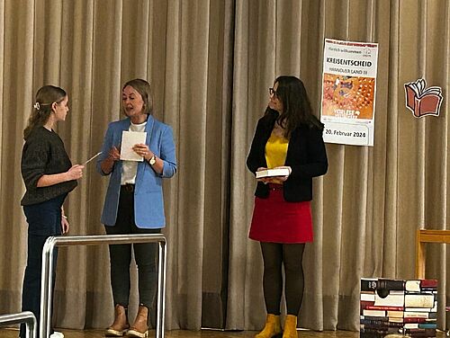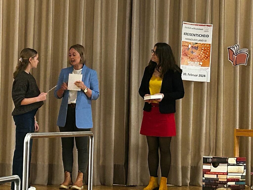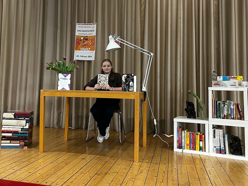 Nachdem sie im Dezember erst den Klassenentscheid und anschließend den Wettbewerb im Jahrgang gewinnen konnte, stand am 20. Februar die nächste Runde an. Im Gymnasium Uetze kamen die 14 Schulsiegerinnen und Schulsieger der weiterführenden Schulen aus Mellendorf, Isernhagen, Burgdorf und Lehrte zusammen. Gelesen wurde ein selbstgewählter Text und ein Fremdtext, der spontan vorgelesen werden musste. In beiden Durchgängen überzeugte Leonie die Jury und qualifizierte sich für den Bezirksentscheid, der vor den Osterferien stattfinden wird.