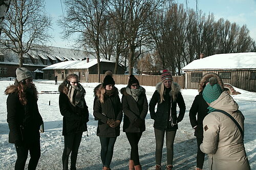 In diesem Jahr ging es per Bahn nach Oświęcim, so der polnische Name der eigentlich beschaulichen Kleinstadt. An zwei Tagen hat die Gruppe des Gymnasiums das Museum und die Gedenkstätten im Lagerkomplex besucht - ein Erlebnis, dass bei Temperaturen um dem Gefrierpunkt und zeitweise starkem Schneefall auch physisch belastend war.