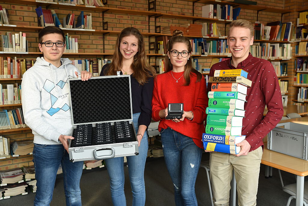 „Der handliche Minicomputer hat den Vorteil, dass er den Inhalt von kiloschweren Schulwörterbüchern mehrerer Sprachen enthält und anders als andere Geräte zu Prüfungen verwendet werden darf“, begründet Studiendirektor Hilko Hinrichs diese Investition. In diesem Kontext betont Hinrichs auch, dass „digitale Lehr- und Lernmaterialien verschiedene Möglichkeiten eröffnen, das Lernen individueller zu gestalten, weil diese sehr konkret gemäß dem individuellen Wissens- und Entwicklungsstand programmiert werden und dabei den individuellen Lernprozess berücksichtigen können. Somit können sie jedem Kind dabei helfen, die eigenen Potenziale besser auszuschöpfen. Digitale Lehr- und Lernmaterialien können Kinder darin unterstützen, selbstständig zu lernen und auf ein Leben in der digitalen Welt vorzubereiten. Das Gymnasium wird daher den Weg der Digitalisierung weiter konsequent beschreiten.“