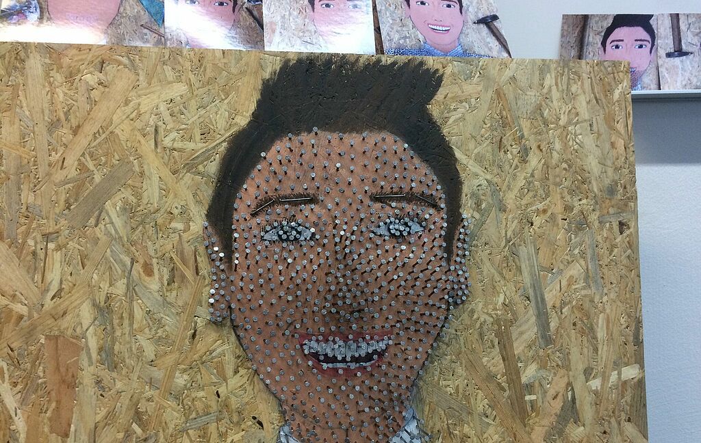 Entstanden ist eine Vielfalt an Werken, welche menschliche Prozesse aus unterschiedlichsten Perspektiven beleuchteten. So zeigte die Spirale des Werkes „Burnout“ von Anja im wahrsten Sinne des Wortes das Abbrennen bis zum letzten Papierschnipsel. Katharina deckte in ihrem Werk die Entstehung eines Lächelns auf und forderte zur aktiven Teilnahme, dem Verschenken eines Lächelns, auf. Johanna zeigte ein Koordinatensystem menschlicher Gefühle, in welchem man sich gedanklich selbst verorten konnte. Carolin machte in ihrem Stopp-motion-Film die Übermacht der Zeit zum Thema, die zum Verlust der Menschlichkeit führt. Ein Porträt des Lebens der Sängerin Nina Simone zeigte Lilli in ihren Werken, die die Distanz zwischen äußerer Erscheinung und inneren Vorgängen hervorhoben. Die plastische Gestaltung eines Schädels mit Soldatenhelm von Lorenzo ließ den Menschen mal mehr und mal weniger durchsichtig erscheinen, was auf innere Befindlichkeiten aufmerksam machte und in der zugehörigen Fotoreihe „Narben“ aufgegriffen wurde. Zum Thema Depression zeigte Klaudia den Prozess mit Klebezetteln als Gedankenblasen auf. Angelika fokussierte das Thema aus einer anderen Perspektive. Mit ihrem Stopp-motion-Film veranschaulichte sie die Veränderung einer Zeichnung, die jeweils Spuren der vorangegangenen Zeichnungen erkennen ließ. Im wahrsten Sinne geschlagen war das Porträt von Finja, die mit Nägeln den Prozess der Depression, die Verschleierung des Selbst, versinnbildlichte. Eine Auseinandersetzung mit den Phasen der Trauer präsentierte Greta in ihrer übermalten Collage, die symbolisch durch die Form eines menschlichen Herzens umrissen wurde.