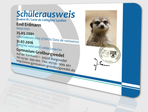 Damit wir in der Schule genug Zeit haben, die Ausweise rechtzeitig bis zum Ferienbeginn zu drucken, bitten wir um eine baldige Bestellung über unser Internetformular. Achten Sie dabei bitte auf die Hinweise zum Foto.