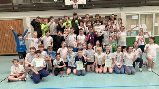 Die Spielerinnen und Spielern wurden ganz hervorragend betreut und motiviert von einigen Zehnt- und Elftklässler(inne)n. Vielen Dank an Leni, Lissi und Enna sowie an Lucas, Konrad, Mads, Noah, Ole und Jendrik! Auch als Schiedsrichter wirkten etliche Gymnasiasten mit und haben ihre Sache sehr gut gemacht. Vielen Dank an die Organisatoren und TSG-FSJler Philipp Triebel und Anton Edmüller (im letzten Jahr ebenfalls noch Gymnasiasten) und an die gesamte Handballabteilung, dass dieses schöne Handballfest für die Viert- und Fünftklässler möglich war!