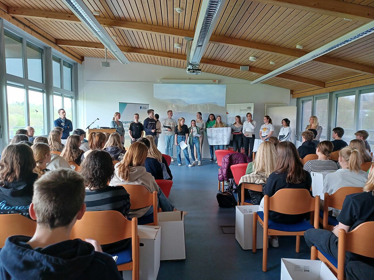 Bereits zum zweiten Mal fand in diesem Jahr eine Begegnung von 40 Schülerinnen und Schülern unserer Schule mit ebenso vielen Gleichaltrigen aus Thüringen statt. In der Gedenk- und begegnungsstätte Teistungen diskutierten die Schülerinnen und Schüler über die deutsche Teilung, die Einheit und den Wert der freien Meinungsäußerung. Unterstützt wurde die Fahrt durch die Konrad-Adenauer-Stiftung.